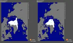 In the image on the right, the magnetic north pole of the Earth has been relocating itself. Its movement even appears to be accelerating.