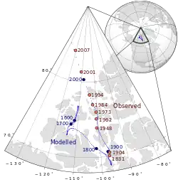 - The liquid magnetic sphere within the Earth is moving such that the North magnetic dip pole is coming closer to the geographic North pole.