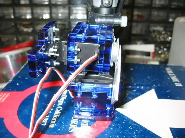 Be sure that as you connect the pieces to the servos that you align the pieces. That is, move the servo all the way to one side then connect the arm at that position. This means that the servo should be in the top most position with the arm pointing upwards. If you do not calibrate at this point you most likely will have to take the robot camera apart and do it at some point.