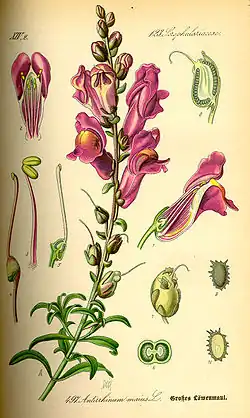 Please contribute!This page is a profile for the plant species Antirrhinum majus, used to collect records of where and when this plant was observed blooming, and for providing identification information for use in dichotomous keys. If you would like to help collect data for this or other plants, see Bloom clock project/How to Contribute for orientation.