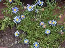 This page contains recent bloom logs for the plant Felicia amelloides (Blue Margherite). If you saw this plant blooming today (or sometime within the last 3 days), you can help improve the bloom clock by logging it. Just click on "edit" next to the Recent Logs heading, add *~~~~ (an asterisk followed by four tildes) on a new line just below the last signature, and then click "save page". This will add your signature and the date to log the plant. Please make sure you've signed up on the contributors' page so that we can know the location of the plant you saw blooming and use your contribution to create a flora for your region! When you're done, you can go back to one of the main pages and find logs of other flowers you might have seen today.