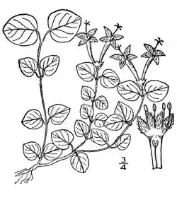 Please contribute!This page is a profile for the plant species Mitchella repens, used to collect records of where and when this plant was observed blooming, and for providing identification information for use in dichotomous keys. If you would like to help collect data for this or other plants, see Bloom clock project/How to Contribute for orientation.