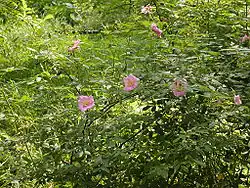 Please contribute!This page is a profile for the plant species Rosa palustris, used to collect records of where and when this plant was observed blooming, and for providing identification information for use in dichotomous keys. If you would like to help collect data for this or other plants, see Bloom clock project/How to Contribute for orientation.
