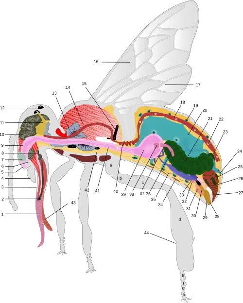 [Wikimedia Commons Bee Anatomy Image]. The anatomy key is available in several languages at this page.