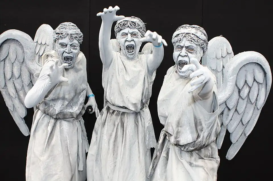 Confused? See Wikipedia:Weeping Angel and learn about Doctor Who. See also A card game for Bell's theorem and its loopholes