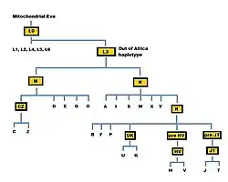 - ↑ Maca-Meyer, N., A. M. Gonzalez, et al. (2001). "Major genomic mitochondrial lineages delineate early human expansions." BMC Genet 2: 13.