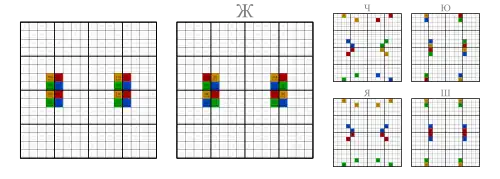 [0, 1, 14, 15, 16, 17, 30, 31, 224, 225, 238, 239, 240, 241, 254, 255]