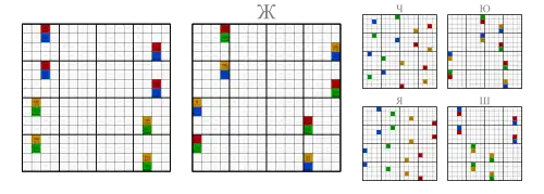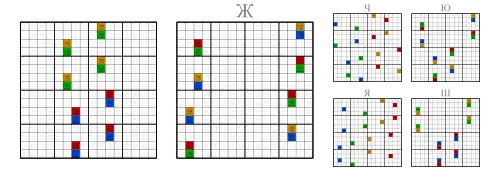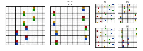 [8, 9, 12, 13, 58, 59, 62, 63, 192, 193, 196, 197, 242, 243, 246, 247]