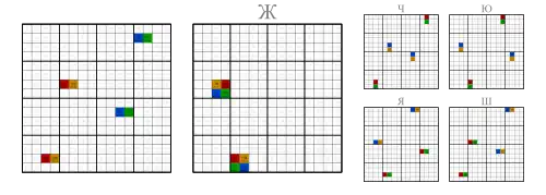 | 8 | (7, 6) | [41, 62, 65, 86, 169, 190, 193, 214]