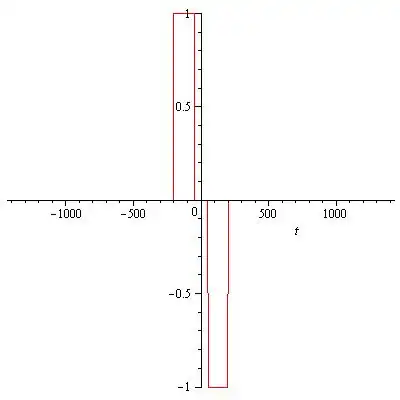 - Shift right or left by an amount such that the resulting periodic function is an odd function. Here is a plot of shifting it to the left half way between the +1 and -1 pulses. This is a shiift of b= 200 μs. The new funnction is . A plot follows: