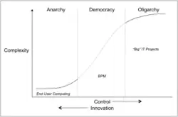 Democracy does not equal the anarchy that many opponents believe will occur. In fact the opposite is true. It quells the anarchic desires to fight against the deployed systems or process solutions. It reduces the number of surprises that arise when solutions are released. The speed by which BPM can make a difference to an organization actually increases.