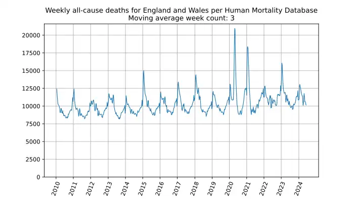 Weekly all-cause deaths in England and Wales, based on mortality.org data, stmf.csv[12], 3-week average: