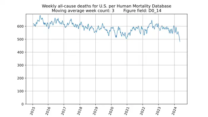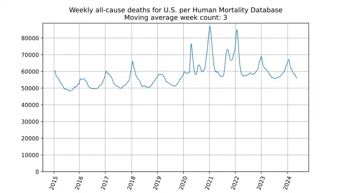 Weekly all-cause deaths in United States, based on mortality.org data, stmf.csv[1], 3-week moving average:
