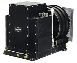The third detector down on the right is the Solar Wind Electron, Proton, and Alpha monitor (SWEPAM) of the Advanced Composition Explorer. It measures the solar wind plasma electron and ion fluxes as functions of direction and energy.