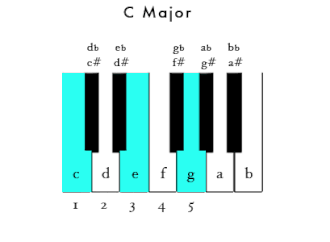 The major triad is often symbolized with a capital letter (C | Cmaj). It is three notes: the first, third, and fifth note of a scale. Alternatively, you can find this chord by adding a note a major third (4 half-steps) up from the root note and then a minor third (3 half-steps) up from that. If you add the half-steps of a major and minor third you will notice the third note is 7 half-steps up from the root making a perfect fifth. This interval will remain the same in major and minor chords. All primary triads are created by stacking intervals of a third. It is a very whole sounding chord, and is found within most, if not all popular songs.