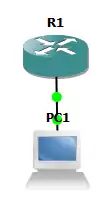 - PC1 Ethernet0 <-> R1 FastEthernet0/0.