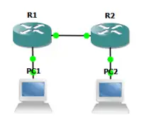 - PC2 Ethernet0 <-> R2 FastEthernet0/1