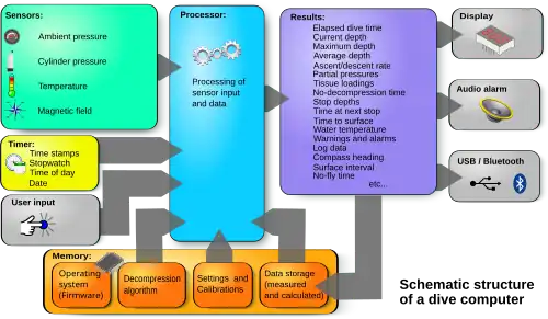 - Dive profile (often not displayed during the dive, but transmitted to a personal computer).