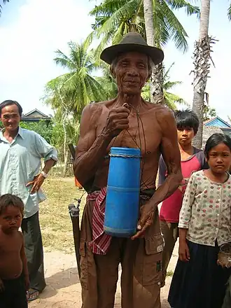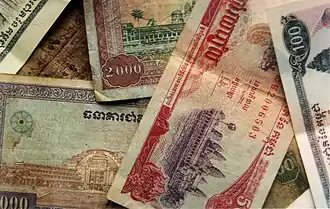 The United Nations Children Fund (UNICEF) states as of 2010 that more than one-third of Cambodians survive on less than $1 a day, falling well below the poverty line.[40] Although Cambodia has seen substantial growth with people living in poverty falling from 4.7 million as of 1993 to approximately 4 million as of 2007, 45% of Cambodian children show "moderate or severe stunting" along with the country having "the highest infant and under-five mortality rates in the region" and surveys conducted by the Asia Foundation as of 2003 reporting that Cambodians cite poverty as being the number one problem they continue to face, with many citizens in rural regions being left behind by growth.[41][42][43]