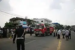 Due to years of war, bombings, and the regime of the murderous Khmer Rouge, the legal infrastructure (physical and social) of Cambodia along with most institutions were in complete disrepair by 1979.[276] Such problems included "penury of surviving legally trained personnel, destruction of archives and legal documentation," the "total absence of formal courts and legality under DK" and "police traditions that ignored such niceties as rights of the accused".[277] This lack of a general support system integral to maintaining a smooth and functioning legal system (and the crucial function of training legal personnel) is evident in the lack of respect for human rights experienced by the Cambodian citizenry at the hands of state actors. The groundwork for this current lack of development in terms of legal administrative functioning was laid down in the early stages of post-Khmer Rouge Cambodia where a re-armed D.K. on the Thai border provided an incentive for militarization of the state.[278] This lack of state functioning set the impetus for the international community to intervene in 1993 and construct UNTAC to broker a peace within the country and set up the ground work for a functioning government.[279] Legal personnel in Cambodia consists of judges, lawyers, administrative officials, and civil and military police, all of which are notoriously corrupt and serve as tools for Cambodia's elite class.[280][281] There have been inter-governmental and non-governmental efforts by such organizations as the United Nations and the Legal Aid of Cambodia to facilitate the development of neutral institutions within the country, yet progress is slow and ongoing.[282] The police are especially known for violent crack downs on citizens wishing to protest. In April of 2011 police beat men, women, children and elderly protesters in Phnom Penh demonstrating against land evictions.[283] The police allegedly used "electric batons" to disperse the protesters.[284] Seeing that the only criteria for enrollment into Cambodia's police force is the ability to pay a bribe, such actions are expected from a enforcement apparatus without adequate training or institutional support.[285] The ability of citizens to redress such grievances against particular state authorities is deterred by the impartiality of the judiciary.[286] These two theoretically independent sectors of the Cambodian government are in reality working in systemic collusion and predominately function only to carry out the bidding of the CPP; these institutions represent elite party interests and not the ideals and standards of the institutions themselves.