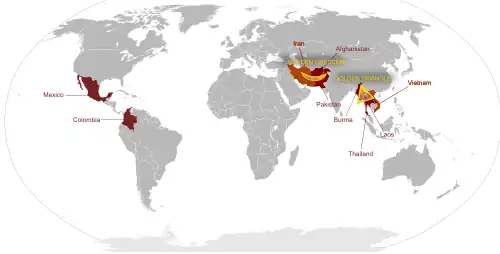- ↑ Fuller, Thomas. 2007. "No Blowing Smoke: Poppies Fade in Southeast Asia." New York, New York: The New York Times. Retrieved May 2, 2011 (http://www.nytimes.com/2007/09/16/weekinreview/16fuller.html)