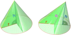 which represents the rate with which a cone's volume changes if its radius is varied and its height is kept constant. The partial derivative with respect to equals , which represents the rate with which the volume changes if its height is varied and its radius is kept constant.