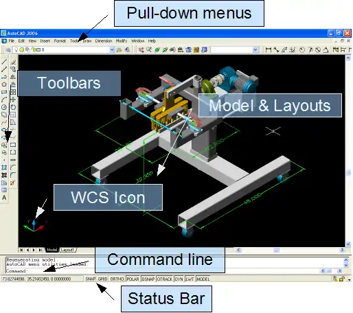 Arguably, the Command Line is the most important part of AutoCAD. You can draw using by only entering "commands" on this line. The Command line is similar to the terminal in Unix or Windows. AutoCAD behaves similarly to these operating systems. It accepts commands and processes them. You should read Command while here. You will see what you must (or can) do to finish commands. Also errors are displayed here.