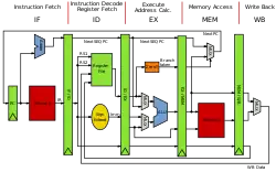 - execution stage is of type register-to-register, the ALU obtaining values from the register file and writing back to the register file during writeback stage