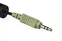 - A phone connector, also known as phone jack, audio jack or jack plug, is a common family of connector typically used for analog signals, primarily audio. It is cylindrical in shape, typically with two, three or four contacts. Three-contact versions are known as TRS connectors, where T stands for "tip", R stands for "ring" and S stands for "sleeve". Similarly, two- and four-contact versions are called TS and TRRS connectors respectively. Normally, 3.5 mm three-conductor sockets are used in computer sound cards for stereo output.[7]