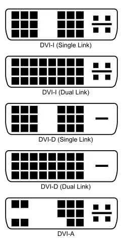 - Digital Visual Interface (DVI) is used to connect a video source, such as a graphics card to a display device, such as a computer monitor. It was developed with the intention of creating an industry standard for the transfer of digital video content. DVI is designed to transmit uncompressed digital video and can be configured to support multiple modes such as DVI-D (digital only), DVI-A (analog only), or DVI-I (digital and analog). Featuring support for analog connections, the DVI specification is compatible with the VGA interface. Although DVI is predominantly associated with computers, it is sometimes used in other consumer electronics such as television sets, video game consoles,[citation needed] and DVD players.[6]