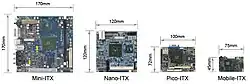 - VIA EPIA (VIA Embedded Platform Innovative Architecture) is a series of mini-ITX, em-ITX, nano-ITX, pico-ITX and pico-ITXe motherboards with integrated VIA processors. They are small in size and consume less power than computers of comparable capabilities.[4]