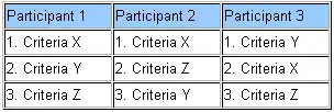 Step 3. You request that each participant fill in the recently generated criteria. The result is below.