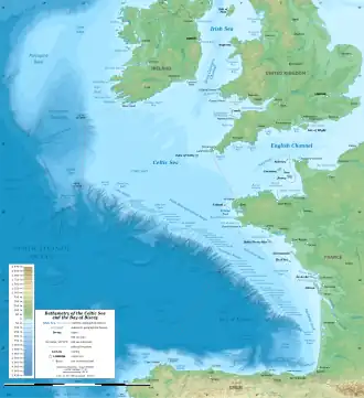 Bathymetric map is of the Celtic Sea and the Bay of Biscay. Credit: Eric Gaba.{{free media}}