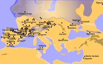 Solutrean finds have been made in the caves of Les Eyzies and Laugerie Haute, and in the Lower Beds of Creswell Crags in Derbyshire, England[14] There was a brief settlement of the Solutrene the Magdalena Cave in the Eifel.[16]