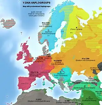 R1b distribution is shown for Europe. Credit: Melrorross.{{free media}}