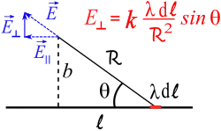 As we integrate over l from to , the component of the field parallel to the wire cancels to zero, leaving:
