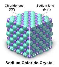 When NaCl is dissolved in water, it has the formula [Na(H2O)8]+. The chloride ion is surrounded by an average of 6 molecules of water.[5] As the water evaporates, the cations of sodium and the anions of chlorine should be drawn back together.