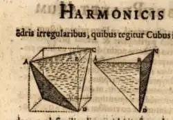 - ↑ The 24-cell's cubical vertex figure[v] has been truncated to a tetrahedral vertex figure (see Kepler's drawing). The vertex cube has vanished, and now there are only 4 corners of the vertex figure where before there were 8. Four tesseract edges converge from the tetrahedron vertices and meet at its center, where they do not cross (since the tetrahedron does not have opposing vertices).