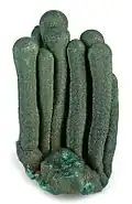 Forming as stalactites or stalagmites; cylindrical or cone-shaped | Calcite, Goethite, Malachite |