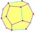 - ↑ 22.0 22.1 22.2 22.3 22.4 22.5 The vertex figure is the facet which is made by truncating a vertex; canonically, at the mid-edges incident to the vertex. But one can make similar vertex figures of different radii by truncating at any point along those edges, up to and including truncating at the adjacent vertices to make a full size vertex figure. That is what serves the illustrative purpose here.