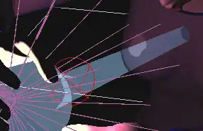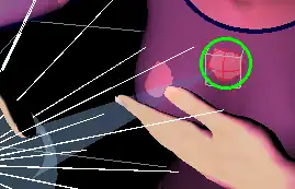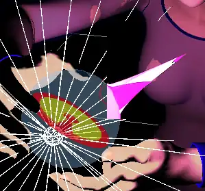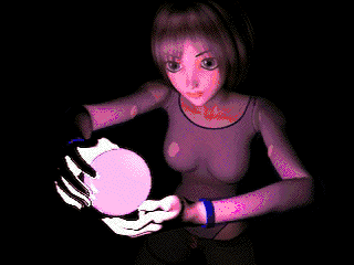 Rather than just have a spike projecting from the "crystal ball", it would be better to have a broader beam of light. A broader projection from the "crystal ball" was produced by using two cooperating D-Formers. Rather than actually create a new "second" D-Former, the existing one was just re-used after creating the morph slider, as described in the previous section of this page. After making the morph slider, the position of the D-Former's force field was changed slightly by moving the force field of the D-Former towards Aiko along the shaft of the spike. This allowed the "beam of light" protruding from the ball to be made broader at the location where it intersected with Aiko's chest (see Figure 4a). Using both the morph slider and the D-former at the same time gives the illusion of a beam of light extending from the sphere to illuminate a patch of the clothing.