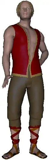 Note: Unlike the character models mentioned at Rendering models of living organisms, the "Apollo Maximus" model is "anatomically correct". Unless you are making an anatomy lesson, you probably want to keep the penis from being visible. One way to do this is to click on the "Scene" tab, click on the + to the left of the "!ApolloMaximus" element, click on the + to the left of the "hip" element, and keep click on additional + signs until you find the elements called "genital1" to "genital5". Make sure you have the "Content" pane scrolled to show the check boxes along the right side of the pane. For each element of the scene (such as "hip", just to the left of the column of check boxes (see page 165 in the manual) there is a small oval icon like an eye. You can click on these "eyes" to make each element of the model visible or invisible. Note: the "Apollo Maximus" model comes with a preset pose for hiding the genitals.