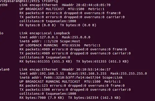 ifconfig command is used to check for the IP address and clearly, It is observed that in this case the IP address is set to static 192.168.3.51