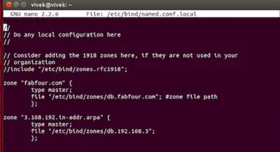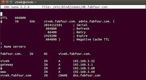 sudo nano /etc/bind/zones/db.fabfour.com