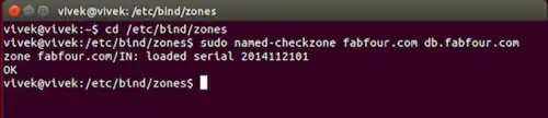 sudo named-checkzone fabfour.com db.fabfour.com