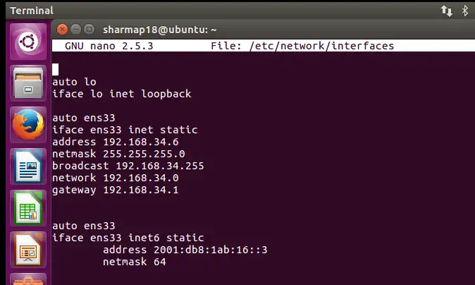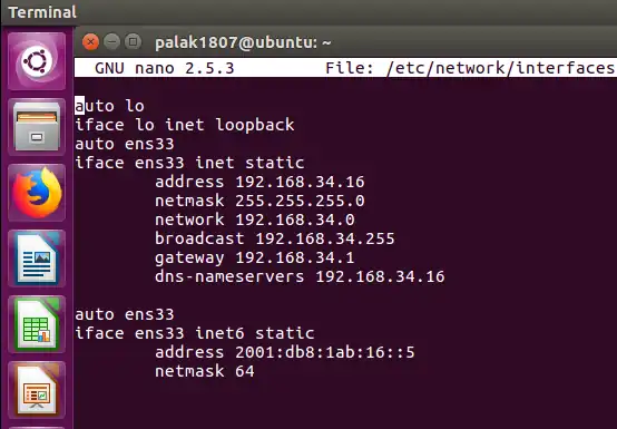 1.STATIC IP (IPv4 and IPv6) is assigned to the DNS server using : sudo nano “/etc/network/interfaces”.