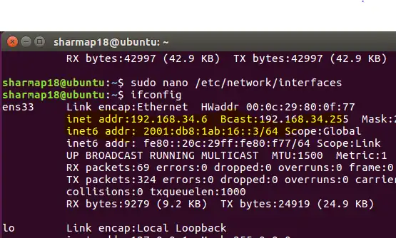 2.Rebooting the network interfaces to check if the IP address are assigned to the virtual machine: sudo /etc/init.d/networking restart