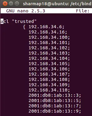 5.Configuring the local host file : sudo nano /etc/bind/named.conf.local