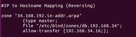 sudo named-checkzone 34.168.192.in-addr.arpa /etc/bind/zones/db.192.168: to check the reverse zone configuration file