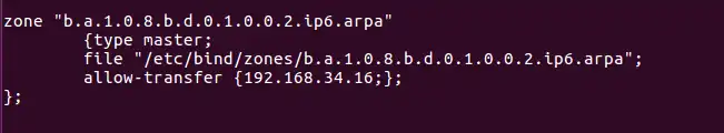 b.Adding reverse query mapping for IPv4 and IPv6,also allowing the request to be transferred to the Slave DNS server having IP address : 192.168.34.16